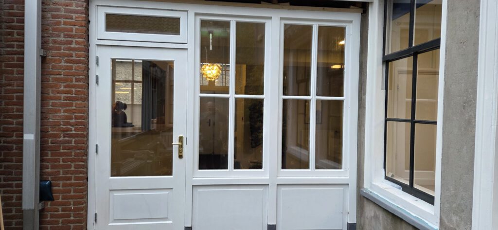 Daarnaast hebben we een nieuw kozijn geplaatst en zijn aan de buitenzijde de gootplanken volledig vernieuwd. Ook is er grondig houtrotherstel uitgevoerd, waarmee het pand weer in optimale staat is gebracht en beschermd is voor de toekomst.